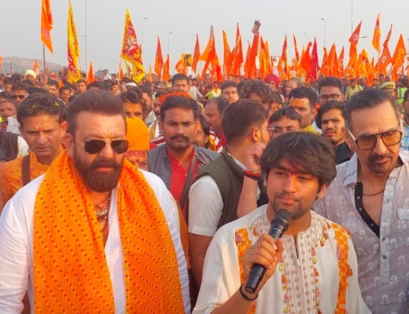 बॉलीवुड के मशहूर एक्टर संजय दत्त झांसी में सनातन हिंदू पदयात्रा में शामिल हुए.धीरेंद्र कृष्ण शास्त्री की सनातन हिंदू पदयात्रा जारी है. पदयात्रा झांसी पहुंची जहां बॉलीवुड अभिनेता संजय दत्त शामिल हुए. इस दौरान उन्होंने कहा, ‘गुरुजी मेरे छोटे भाई है. यदि वह मुझसे कहें कि ऊपर चलना है तो मैं ऊपर भी चला जाऊंगा. ये देश एक है, सभी एक ही हैं. ये हमारा प्यारा हिंदुस्तान है’. संजय दत्त ने यूपी के संभल में चल रहे मस्जिद विवाद पर कुछ भी बोलने से इंकार करते हुए कहा कि यह पॉलीटिक्स की बात मैं नहीं करता.