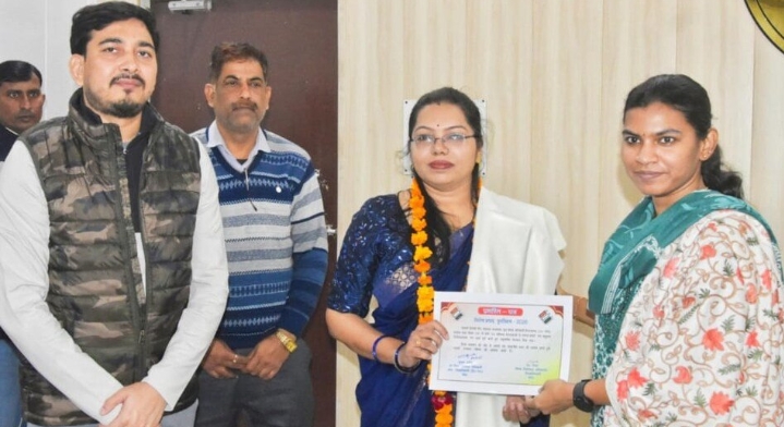 जिलाधिकारी द्वारा समय से कार्य पूरा करने पर 14 बीएलओ को जिलाधिकारी द्वारा सम्मानित किया गया.यूपी के बांदा में चल रहे मतदाता सूची के विशेष सघन पुनरीक्षण अभियान (SIR) में समय से पहले 100% काम पूरा करने वाले 14 BLO को DM जे. रिभा ने प्रशस्ति पत्र और फूल माला देकर सम्मानित किया. BLO ने कहा कि यह चुनाव आयोग का महत्वपूर्ण कार्य था, जिसे प्राथमिकता देकर पूरा किया गया. DM ने अन्य BLO को भी समय से काम पूरा करने के निर्देश दिए.