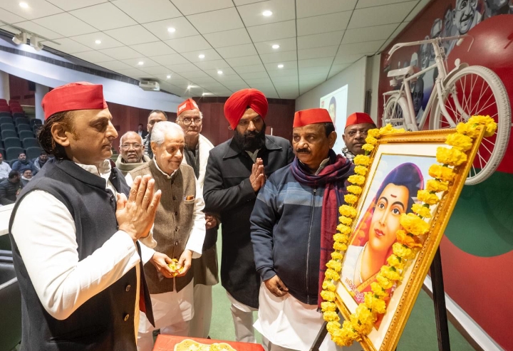 समाजवादी पार्टी के राष्ट्रीय अध्यक्ष एवं पूर्व मुख्यमंत्री अखिलेश यादव ने सावित्री बाई फुले के चित्र पर माल्यार्पण कर नमन किया।