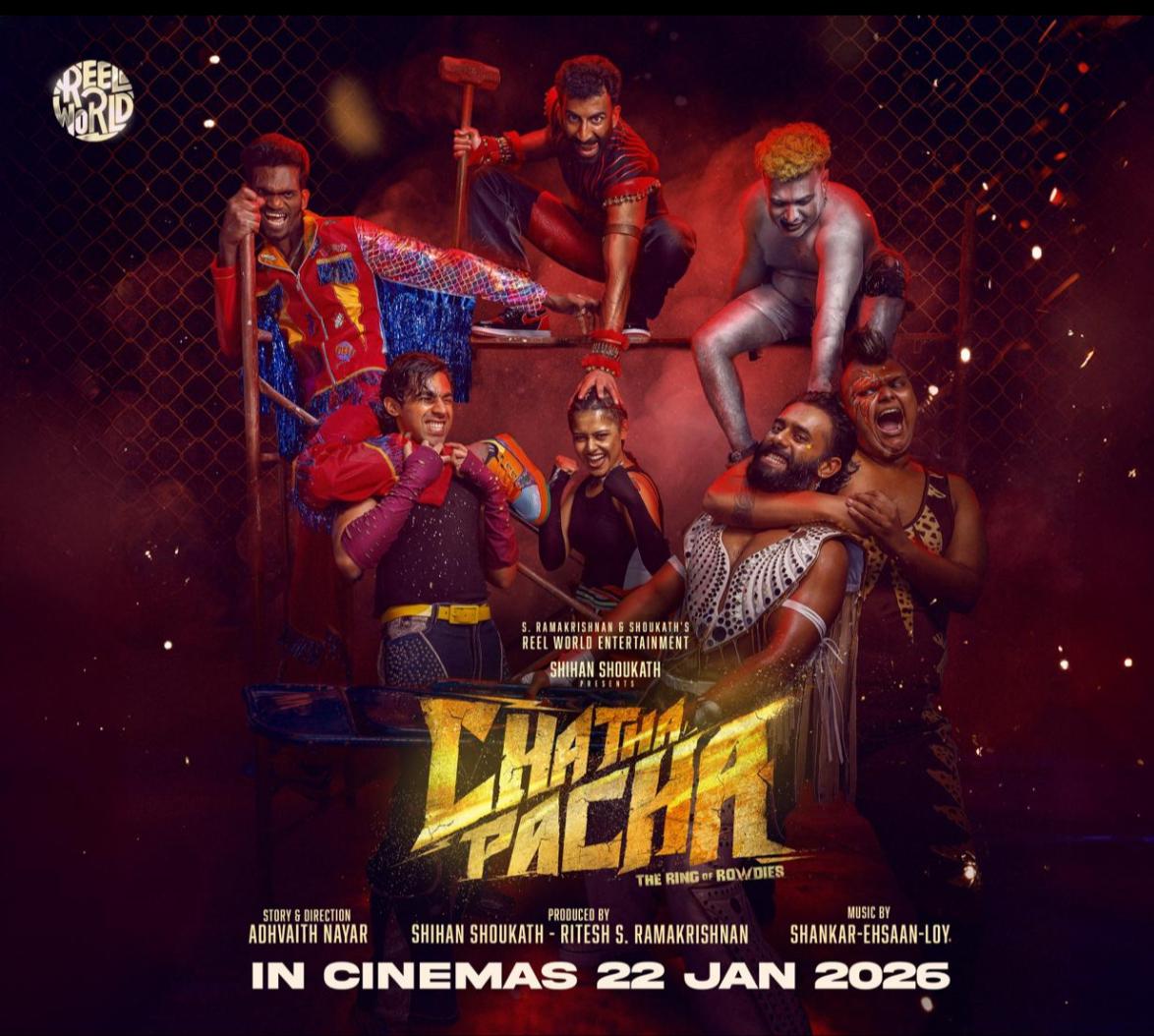 शिहान शौकत द्वारा निर्मित और दिग्गज अभिनेता मोहनलाल के भतीजे अध्वैत नायर द्वारा निर्देशित ‘चथा पचा – द रिंग ऑफ राउडीज़’ मलयालम सिनेमा के लिए एक नया और अनोखा क्षेत्र तलाशती है। यह फिल्म WWE-स्टाइल स्पोर्ट्स एंटरटेनमेंट की हाई एनर्जी को भावनात्मक रूप से सशक्त कहानी कहने के साथ जोड़ती है। कहानी उन पूर्व कैदियों के समूह के इर्द-गिर्द घूमती है जो मिलकर एक अंडरग्राउंड रेसलिंग क्लब बनाते हैं।